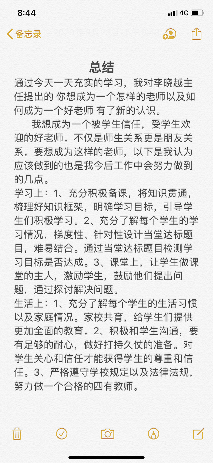 之后,刘悦老师以校园中曾发生的真实事件为案例,向老师们提出了许多在德育教育中需注意的细节,这些切实可行的建议为新老师今后的工作增添了信心。除此之外,刘老师还详细介绍了我校的课堂常规,突发事件的应对方法,并创设问题情境,引发了大家的深入思考。 不积跬步,无以至千里。正是对教育过程中一点一滴的把控,和对学生成长过程的及时关注,我校才得以真正做到立德树人。刘老师对工作细节的严谨态度,既让新老师们感到敬佩,又引发了大家对工作更多的思考。 接下来是云天职教李华涛副校长为大家带来的《云天一家人——做一名幸福教师》的讲座。 李校长强调,进入任何行业之初都是伴随着艰苦的,只有坚定信念才能得到最快的成长。新教师要始终怀抱育人之心,只有勇敢面对自己成长路上的每一个选择,才能突破自我,走向幸福。李校长这份对教育工作的热忱深深感染着在场的每一位新老师,大家都期待自己在今后能快速成长,成为一个有能力有情怀的好老师! 下午,首先是由政教处袁战东主任讲解了云天职教的教师常规管理,重点讲述了我校的“四位一体”幸福教育模式和全员导师制度。 袁主任结合自身工作体会,重点强调我校德育工作要牢记教育使命,牢牢把“立德树人”作为工作方向,做有温度的德育,注重德育实践活动,结合时间节点适时开展主题教育,全方位对学生思想进行引领。 之后是办公室李晓越主任进行了以《为爱而生,向美而行》的师德专题讲座。 讲座围绕三个问题展开,结合大量教育教学实例深入解读了教育部印发的《新时代中小学教师职业行为十项准则》。并且向在座的新老师们提出了三点建议:努力向上才是真正敬业爱岗;积极适应新时代新形势;上好课就是最大的师德。 最后,李主任送给老师们几句话,“你所培养的学生,正是祖国的未来。你是什么样,中国的教育便是什么样;你是积极向上的,中国的未来便具有无限可能!” 接下来,云天教育集团总督学王新军就“新教师存在的问题与建议”与老师们进行了探讨。 云天教育集团总督学王新军从他的从教生涯开始讲起,分享了他自己的所体悟到的得与失,围绕我校青年教师的成长状况以及部分青年教师存在的问题,与在场老师展开了讨论。 同时还介绍了青年教师成长要走过的三个阶段:理想期、困惑期和成熟期。他提醒大家在困惑期时“如果改变不了现实,就痛快地接受现实”,新教师们应当不惧困难,努力提升自我。听完培训,新老师们对未来的职业生涯的体悟和思考仍将沿着时间的轨迹不断延续下去。 培训结束后,新教师们纷纷分享自己的心得体会,分享自己的所学所感。通过每天的培训,新教师们更加明确了自己的定位。在学校领导和前辈的用心引领下,新教师们更加深了对学校相关工作的了解。 我们相信,每位老师都能在接下来的教学生活中脚踏实地上好每一节课,用心带好每一位学生,“为学生的发展提供最适合的教育”,为云天职教的教育发展添砖加瓦。