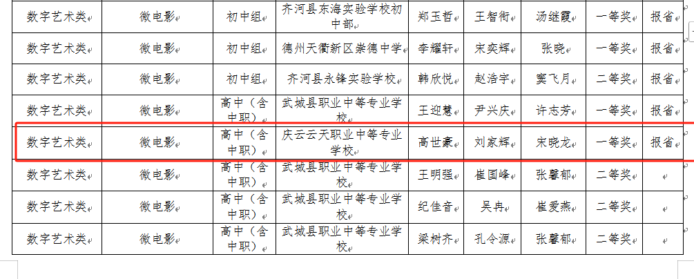 微电影项目高世豪、刘家辉同学荣获一等奖,指导教师宋晓龙,推荐至山东省参加省赛。