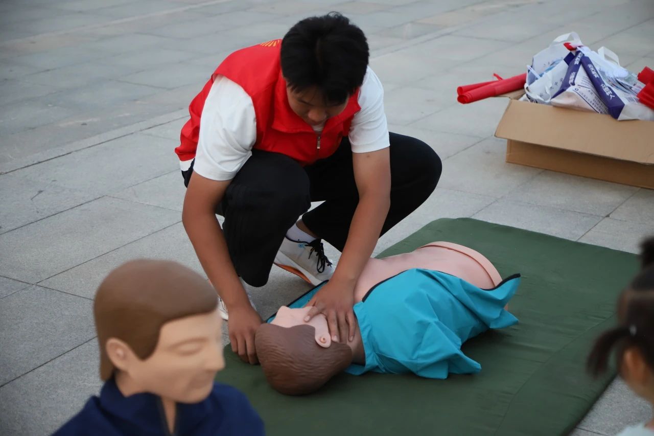 在活动现场,护理专业学子始终是最忙碌的身影。他们熟练地为往来群众测量血压,针对老年人常见的高血压问题提供健康建议。心肺复苏急救技能展示区更是吸引众多市民驻足,学生们通过人体模型现场演示胸外按压、人工呼吸等急救要领,手把手指导市民进行实操。"原来黄金四分钟这么重要!"一位刚学会急救技能的年轻妈妈感慨道,"孩子们教得特别耐心,这样的知识应该全民普及。"