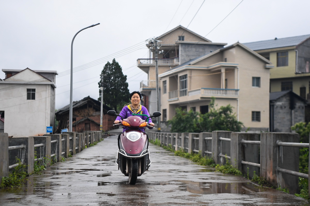 5月25日,杨文清骑着摩托车行驶在登云寨村。